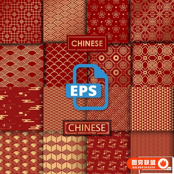 图穷联 » [矢量素材]16款金色传统佳节中国风喜庆背景装饰无缝纹理EPS矢量素材 Golden