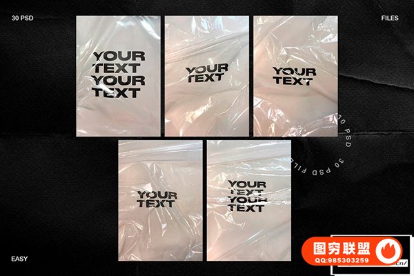 [PS样机]30款褶皱气泡透明塑料保险膜铝箔防震膜包装纸设计贴图PS样机 30 PSD Plastic Mockup Templates