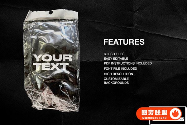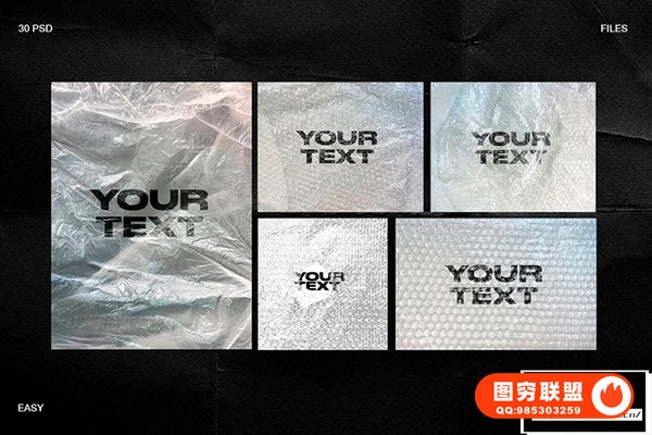 图穷联 » [PS样机]30款褶皱气泡透明塑料保险膜铝箔防震膜包装纸设计贴图PS样机 30 PS