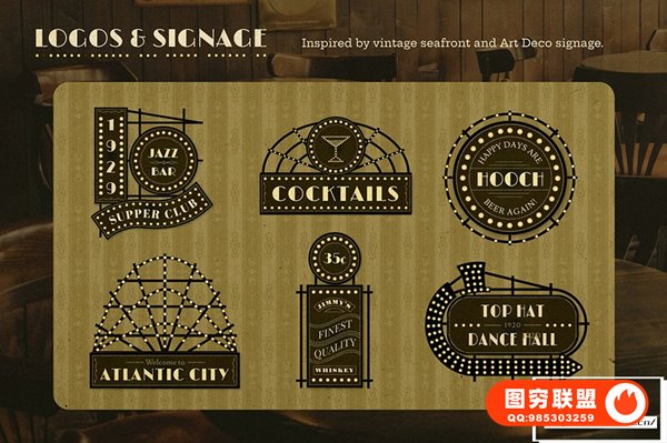 经典的装饰艺术设计模板,灵感来自昔日的海滨标牌。