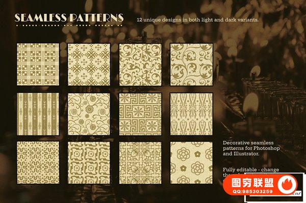 浅色和深色版本的 12 种装饰图案