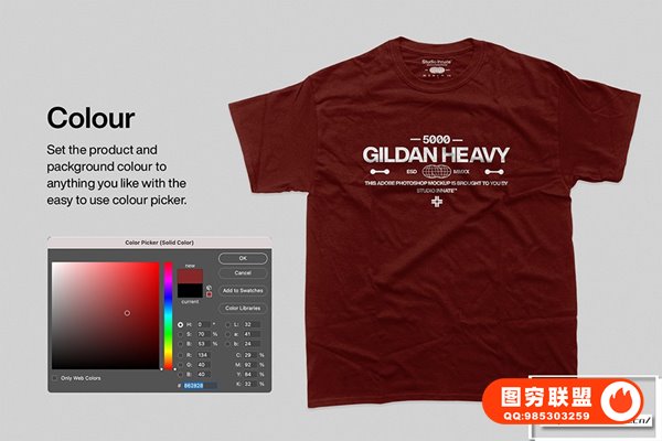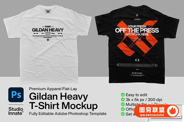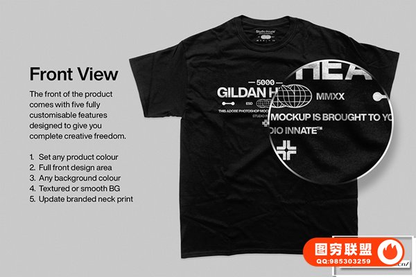 图穷联 » [PS样机]时尚潮牌短袖T恤平铺服装印花图案设计贴图PS样机 5000 Gildan