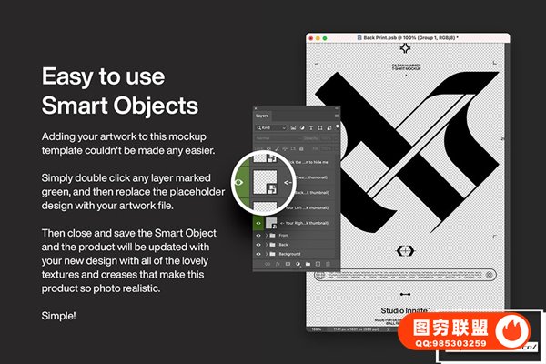 5000 Gildan Heavy – T-Shirt Mockup 是一个完全可定制的 Adobe Photoshop 模型。通过更新图层面板中以绿色清楚标记的每个智能对象中的内容,轻松应用您的设计或徽标。每个智能对象都已设置为与织物一起变形并继承织物纹理和折痕。您还可以使用颜色选择器将背景和产品颜色更改为您喜欢的任何颜色。