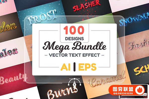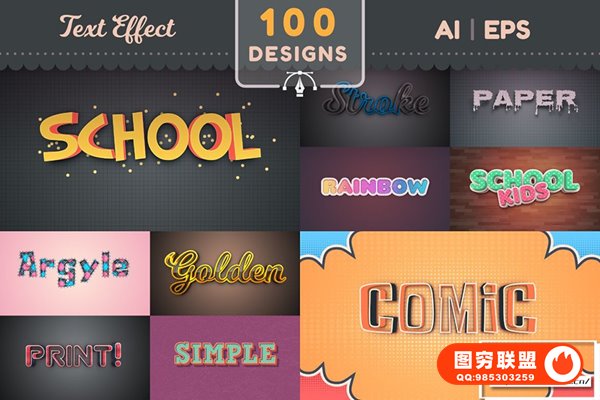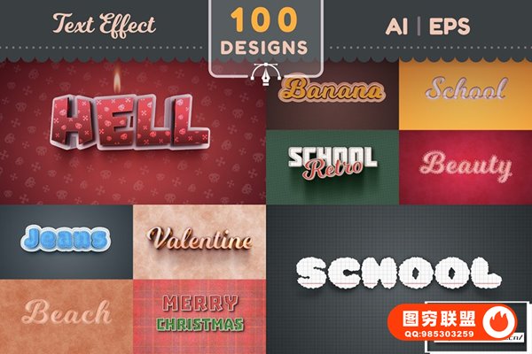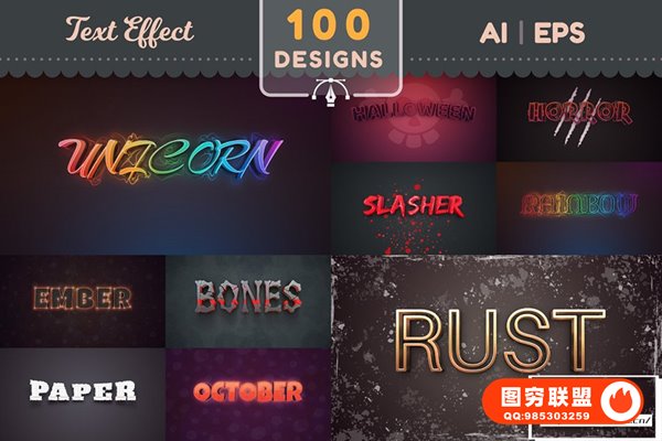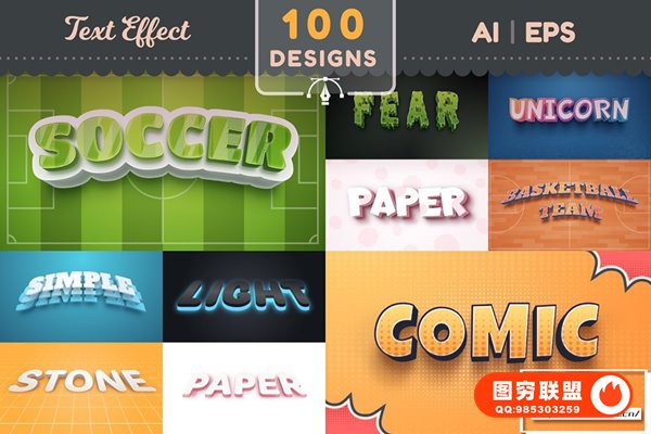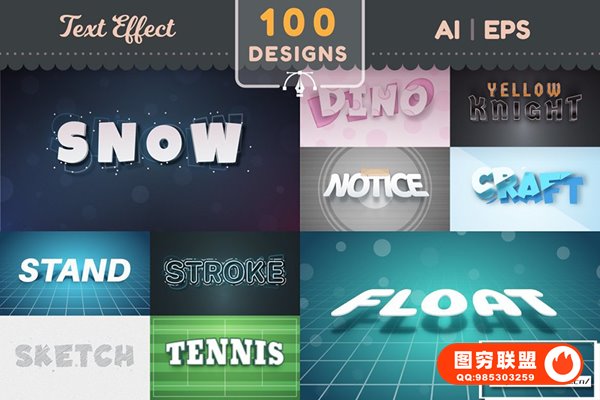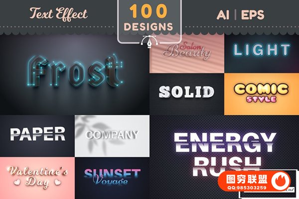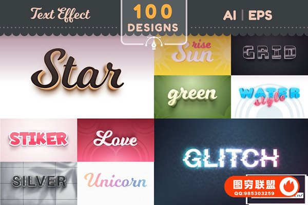 图穷联 » [文本样式]100种创意时尚新颖独特可编辑矢量设计文本样式Ai素材 Set 100