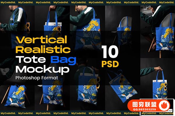 图穷联 » [PS样机]10款人物模特帆布袋购物袋手提袋布袋展示PS样机 Vertical Re