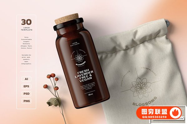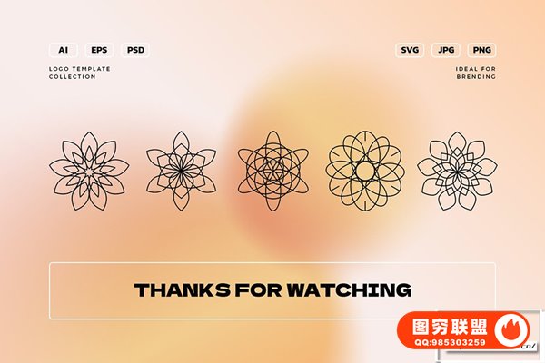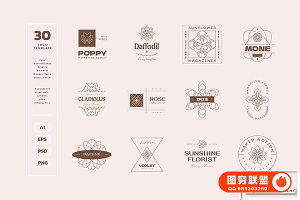 图穷联 » [矢量素材]180款优雅时尚极简现代手绘花卉抽象几何Logo图形渐变背景VI设计矢量