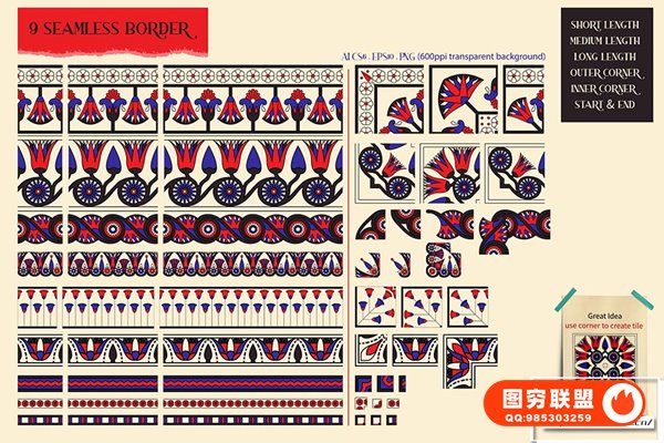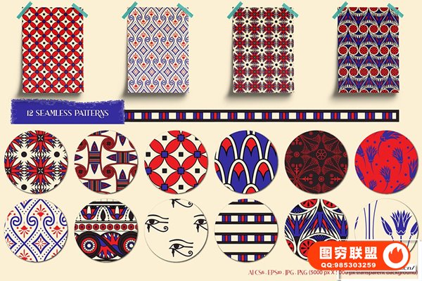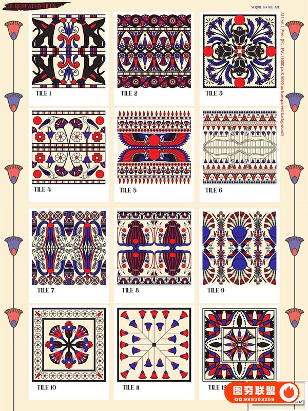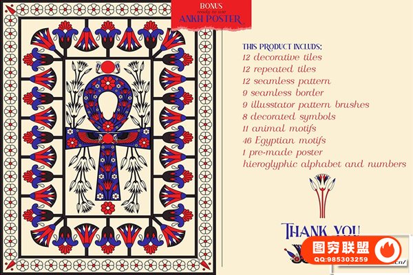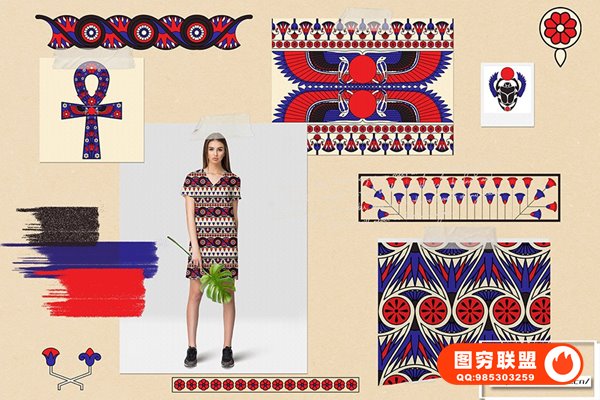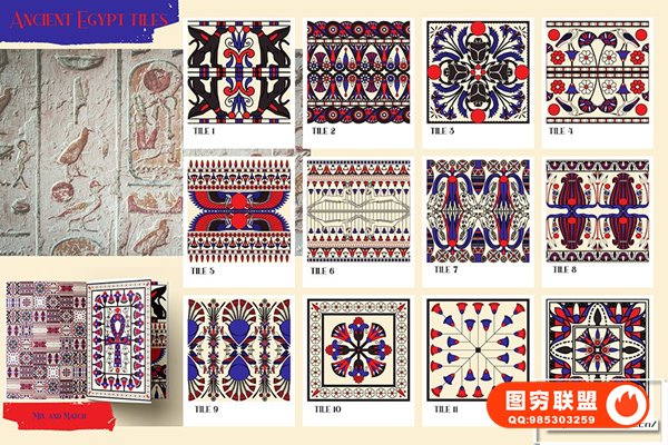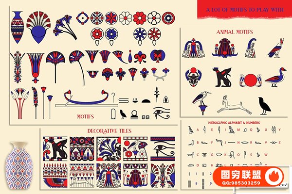 图穷联 » [矢量素材]100多款古埃及风情优雅神秘图形装饰符号图案纹理象形文字艺术设计矢量素材