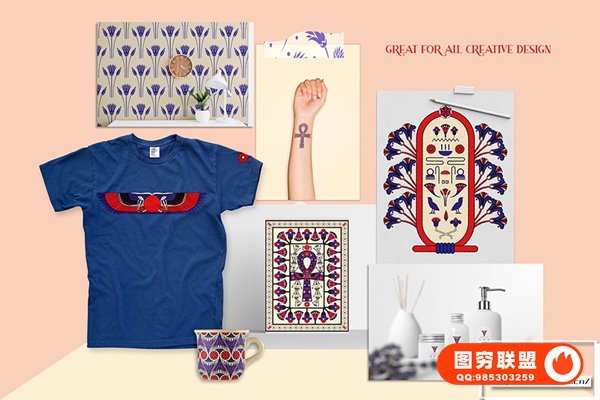 受古埃及伟大艺术的启发,这款产品旨在为您的创意项目增添独特而优雅的触感。凭借广泛的设计元素集合,您可以使用此产品创建太多独特的创意设计。可用于品牌、文具、婚礼请柬、艺术墙、墙纸、织物、徽标、包装纸、包装等。