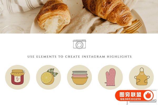 100 张手绘插图非常适合徽标、Instagram 亮点、名片、印刷品、文具、食谱卡等。