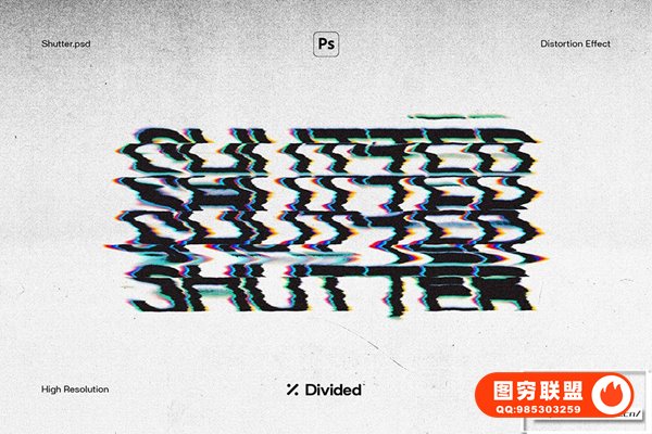 图穷联 » [PSD模板]故障扭曲毛刺失真效果文本标题Logo特效PSD样机模板 Shutter