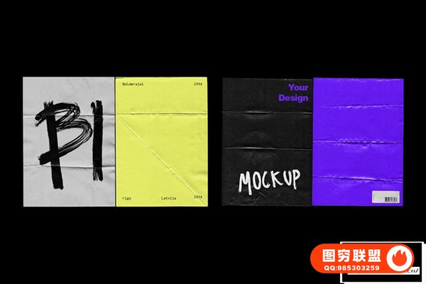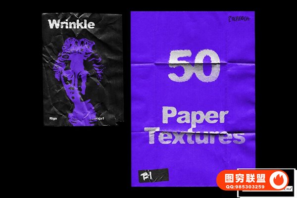 图穷联 » [PSD模板]50种复古褶皱撕裂纸张纹理传单文本海报设计PS样机模板 Wrinkle