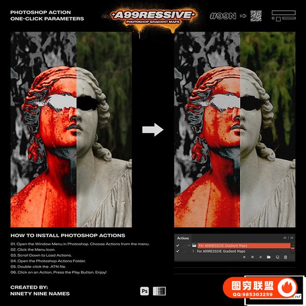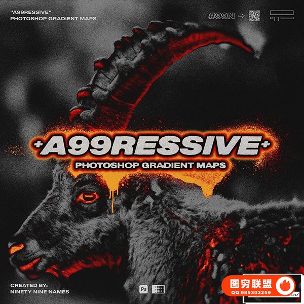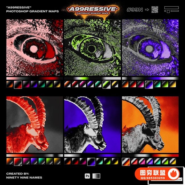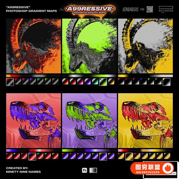 [PS渐变]140款黑暗魔法侵略冲击视觉配色效果艺术设计PS渐变贴图+动作 99 NAMES – A99RESSIVE Gradient Maps