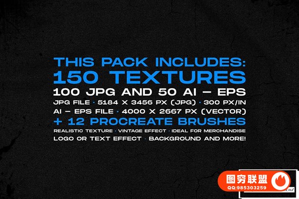 [图片素材]150款复古做旧磨损粗糙颗粒噪点纹理照片合成叠加矢量素材 Cracked & Distressed Textures