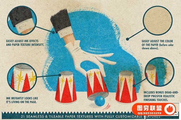 一个包含 21 种无缝高分辨率纸张纹理的库,可模拟真实墨水的外观