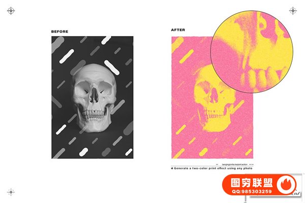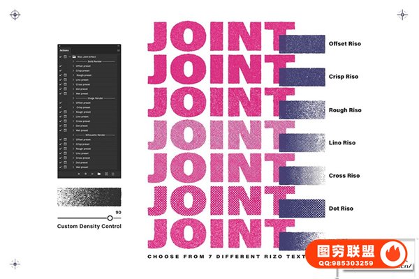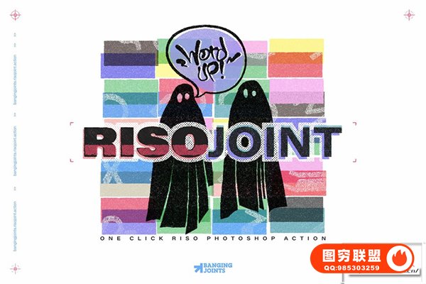 [PS动作]复古涂鸦喷漆油墨丝网半色调Risograph 印刷出血图形文本Logo海报设计PS动作 RisoJoint Effect Action