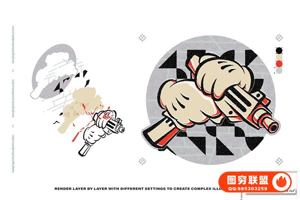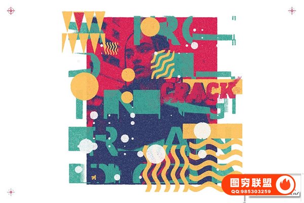 图穷联 » [PS动作]复古涂鸦喷漆油墨丝网半色调Risograph 印刷出血图形文本Logo海