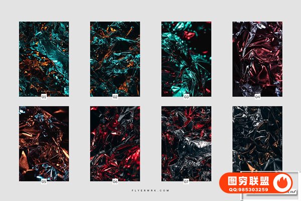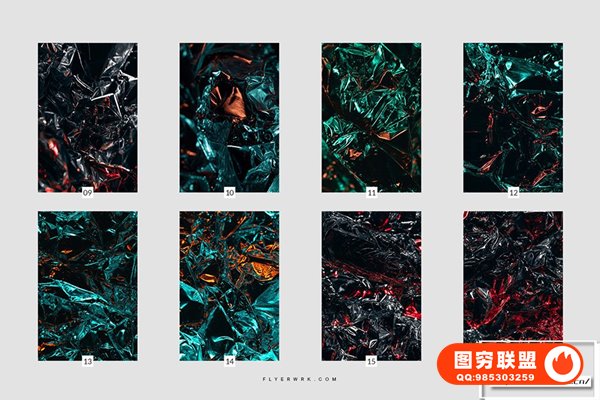 图穷联 » [图片素材]16张粗糙扭曲褶皱箔铬合金银铝金属抽象艺术纹理图片素材 Flyerwrk