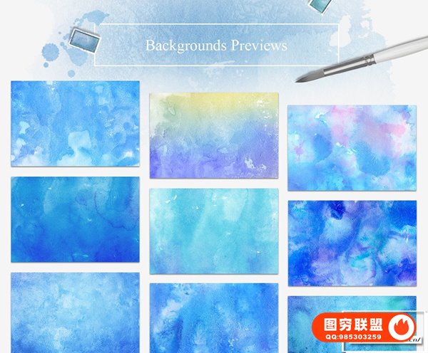 图穷联 » [图片素材]30张冬季淡雅水彩画涂鸦手绘插画背景纹理素材 30 Winter Wat