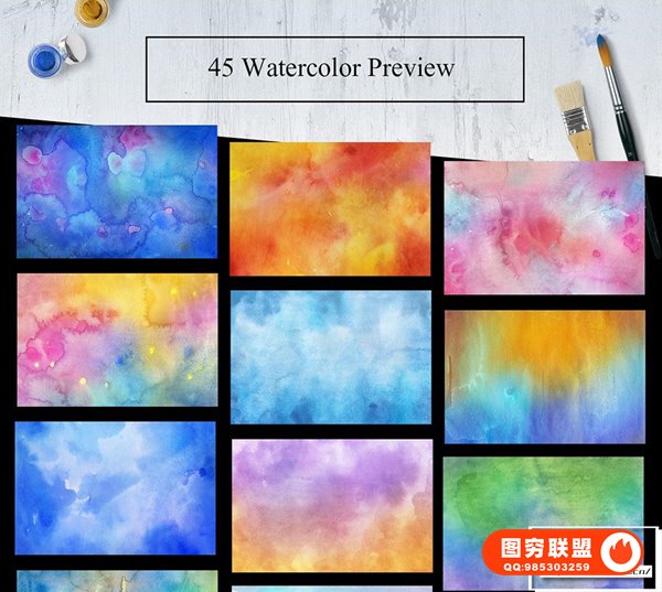 [图片素材]45张淡雅自然水粉手工画水彩纹理背景图片素材 45 Rainbow Watercolor Backgrounds