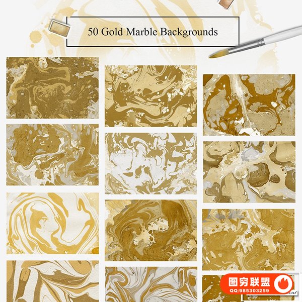 100 金水彩和大理石背景 – 奢华的艺术背景包,里面有许多不同的纹理,适合任何口味。