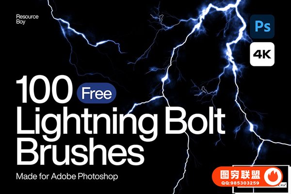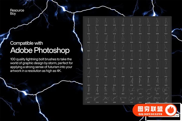 [PS笔刷]100支4K高清闪电雷电光效PS笔刷 100 Lightning Bolt Photoshop Brushes
