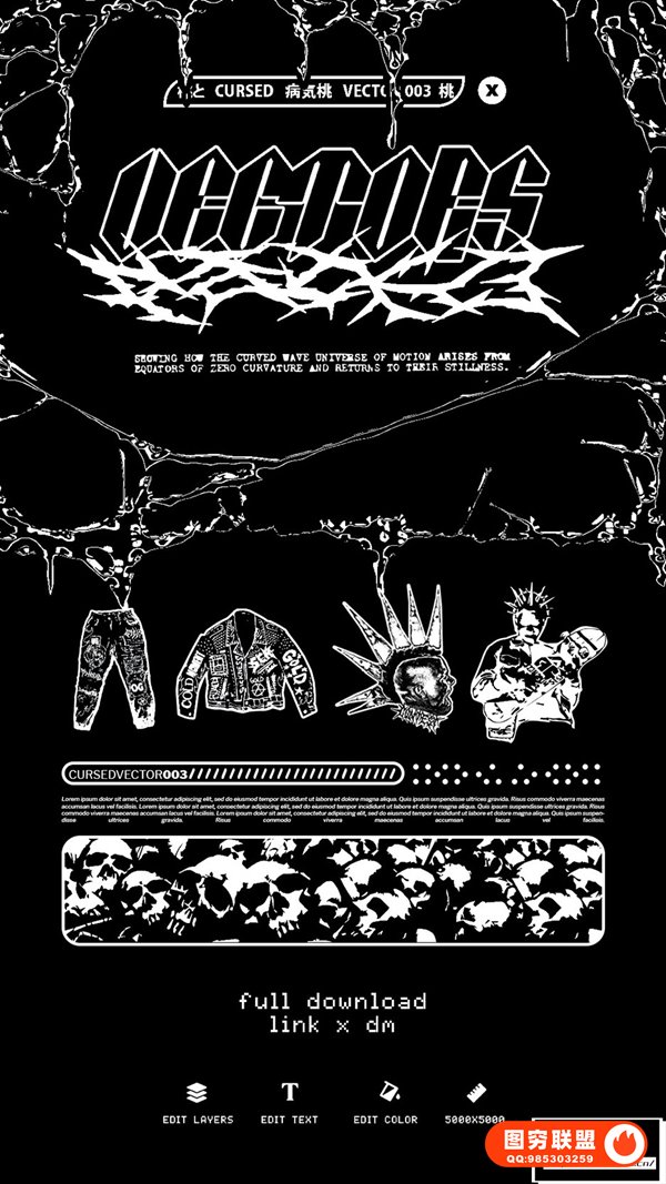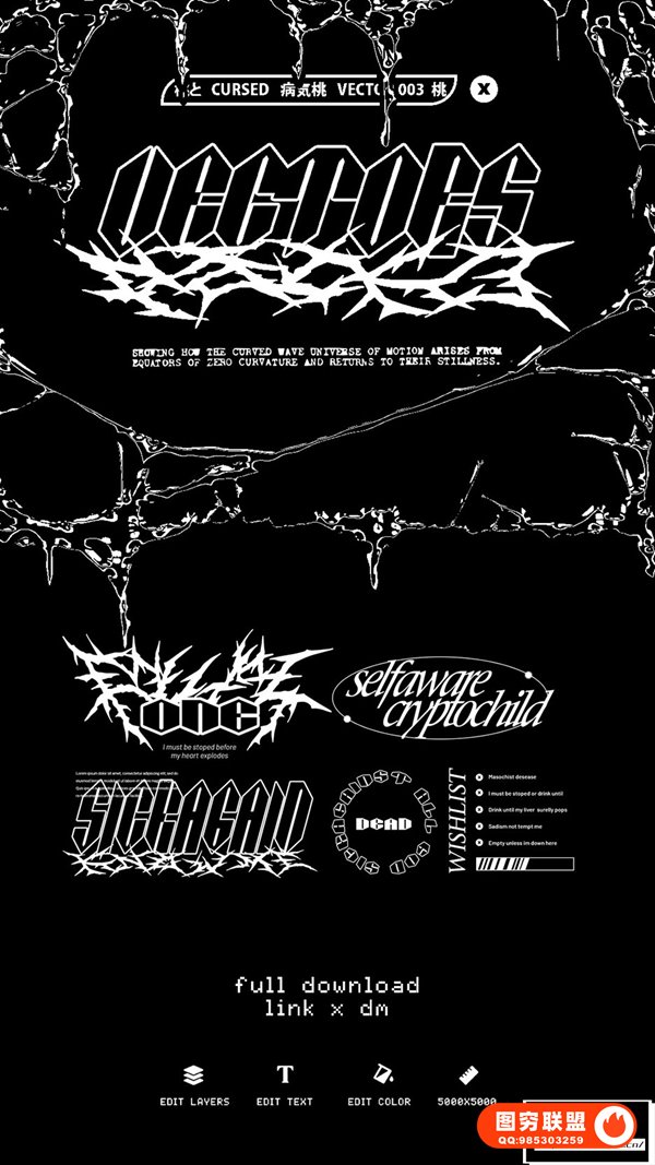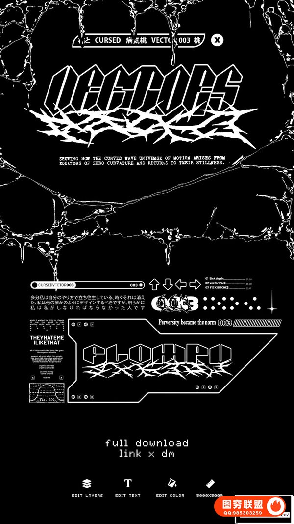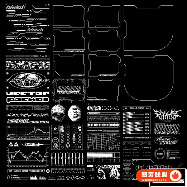 图穷联 » [矢量素材]200+未来主义科幻魔幻重金属哥特赛博朋克小众亚文化街头嘻哈电音机能酸性
