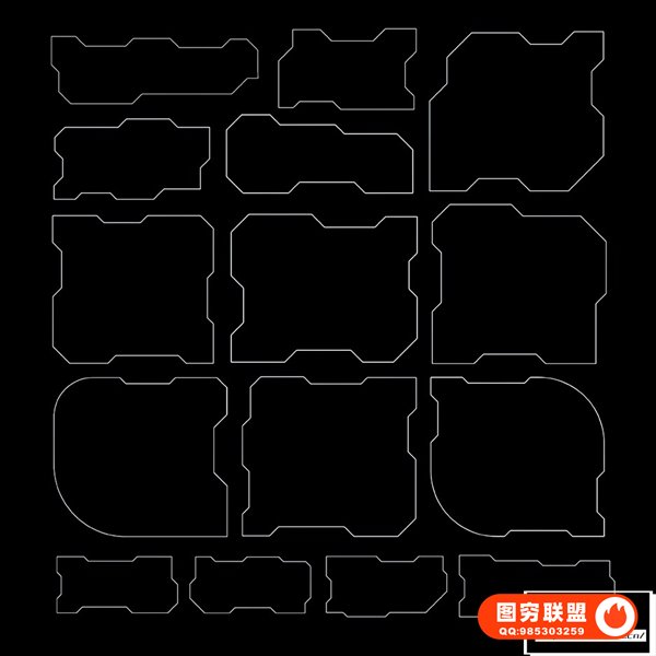 此包包括+200 个新矢量:+30 个未来主义框架 + 30 个形状 + 20 个 huds + 5 个用于现代徽标的自定义字体 + 50 个 cursed png 所有这些包都可以在您的所有项目中使用。