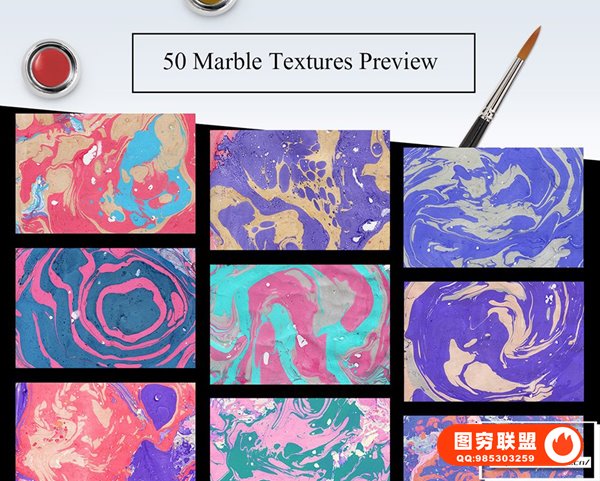[图片素材]50张液体流动大理石抽象扭曲花纹纹理背景设计图片素材 50 Marble Paper Textures