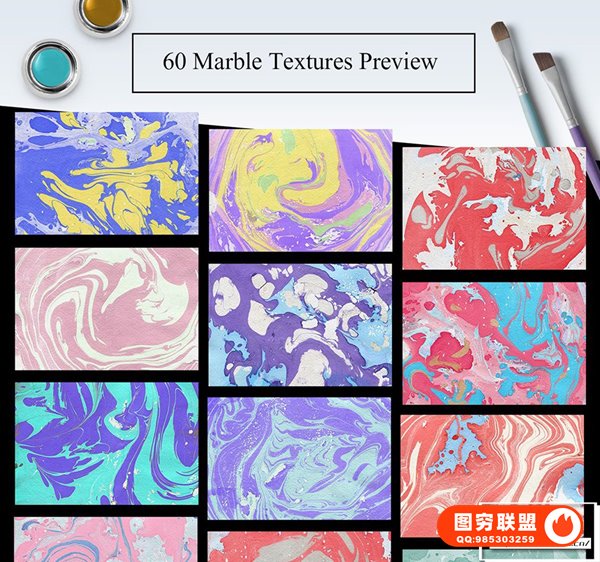 [图片素材]60张抽象艺术扭曲纹理大理石墨水纸张背景图片素材 60 Marble Paper Backgrounds