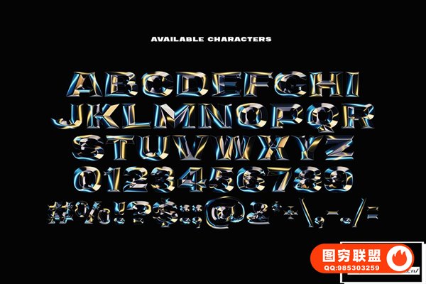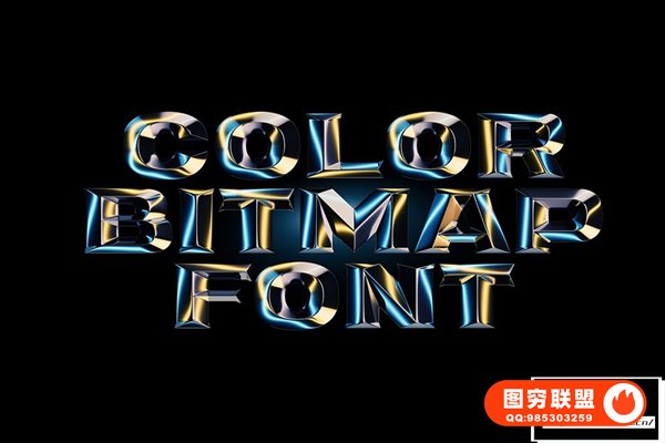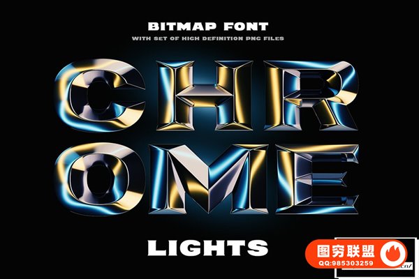 [字体]3D渲染镀铬金属棱角闪亮光泽反射艺术彩色英文字体 Chrome Lights – Bitmap Color Font