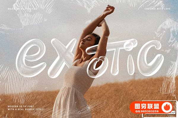 图穷联 » [字体]复古Y2K卡通趣味涂鸦手绘透明气泡水泡3D英文艺术字体 YOUTH MOJI