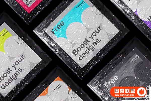 图穷联 » [PS样机]方形塑料气泡薄膜卡片包装效果PS样机 Square Card With