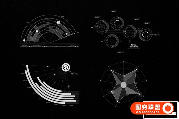 图穷联 » [矢量素材]10款科幻未来军事游戏HUD图形元素Ai矢量素材 Complex HUD