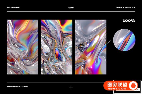 图穷联 » [图片素材]32款迷幻视觉冲击力3D液体流体抽象艺术海报背景图片设计素材 Flyer