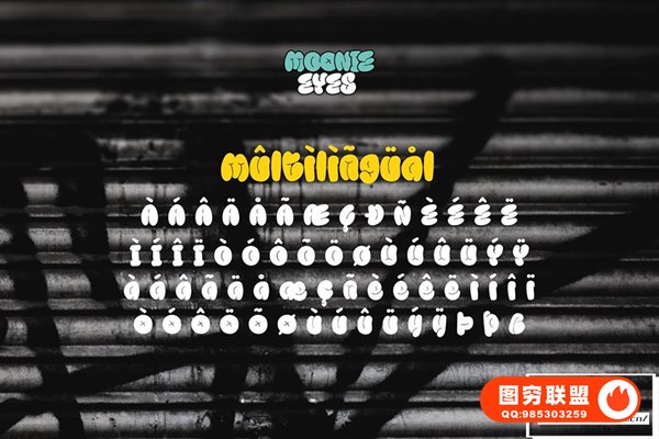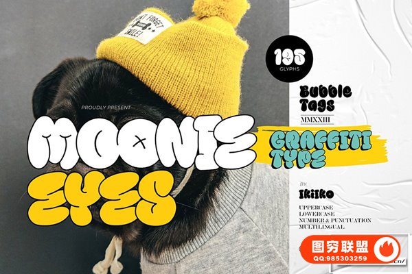 [字体]潮流复古Y2K街头艺术涂鸦趣味圆润泡泡海报标题排版Logo装饰字体 Moonie Eyes – Graffiti Type