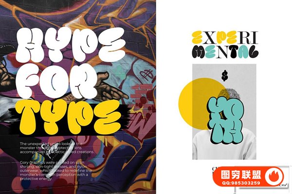 这种类型非常适合制作街头服饰品牌、海报或杂志版面、时装设计、名言,或简单地作为任何背景图像的时尚文字叠加。