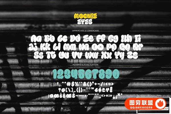 图穷联 » [字体]潮流复古Y2K街头艺术涂鸦趣味圆润泡泡海报标题排版Logo装饰字体 Moon