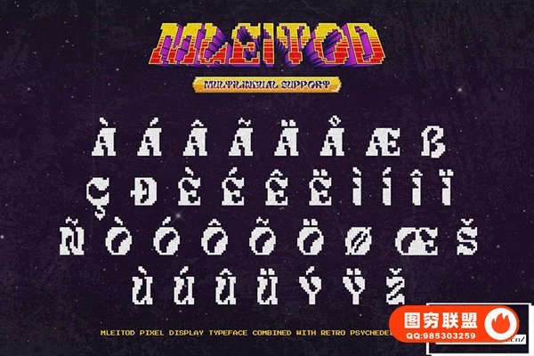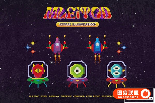 图穷联 » [字体]复古趣味星际战舰迷幻像素游戏衬线装饰英文字体 Mleitod