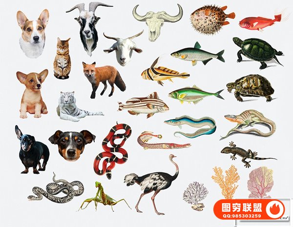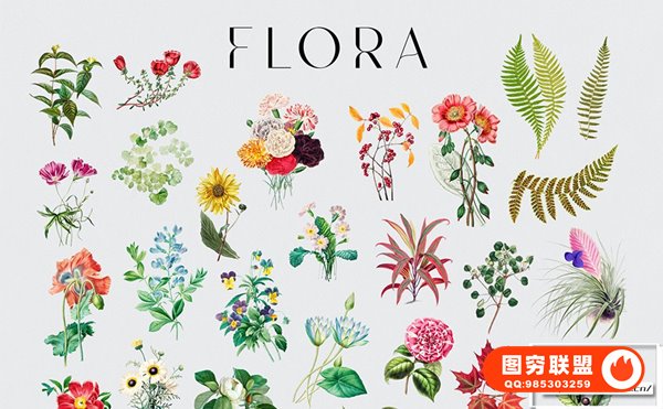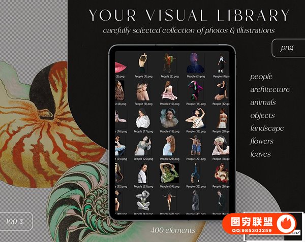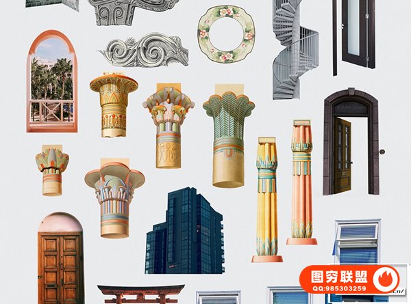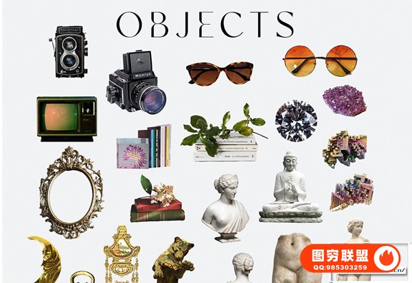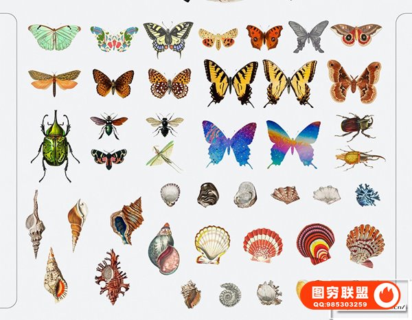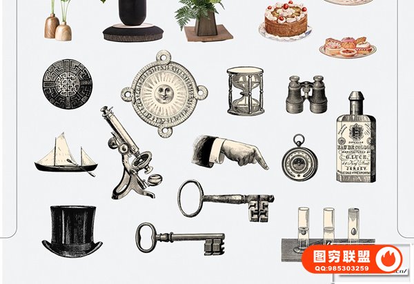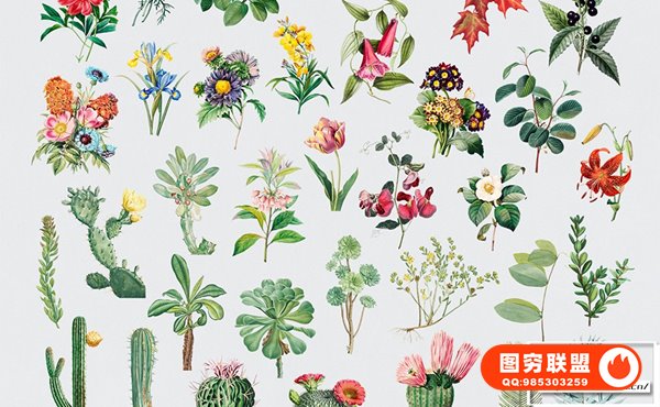 图穷联 » [PNG素材]400+复古植物动物鸟类蝴蝶人物花草花卉树叶建筑PNG剪贴画PS设计素