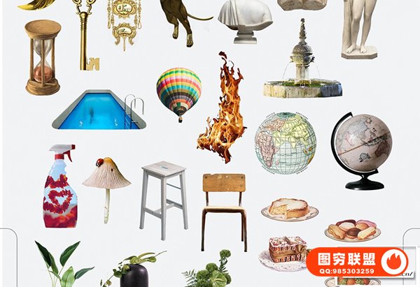 [PNG素材]400+复古植物动物鸟类蝴蝶人物花草花卉树叶建筑PNG剪贴画PS设计素材 Sweven – Collage Creator
