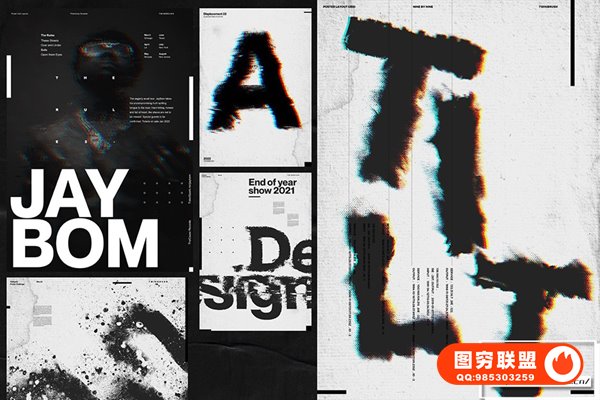 图穷联 » [PSD模板]潮流时尚故障水墨中国风扭曲失真纹理置换创意海报设计PSD模板 Ulti