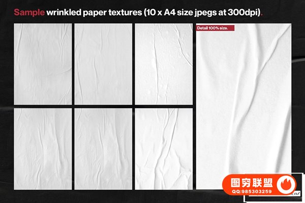 10 张高分辨率皱纹纸纹理(.jpg 格式)A4,分辨率为 300dpi