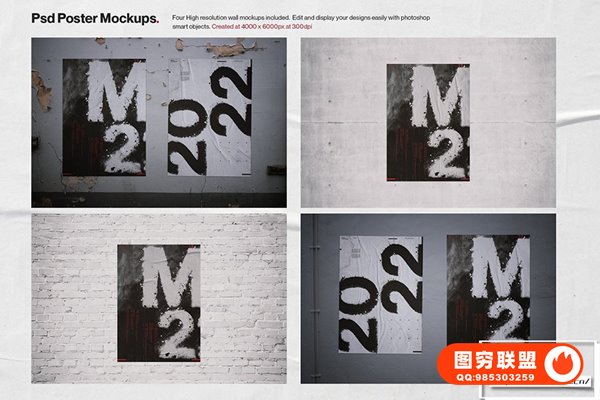 4 高分辨率海报墙模型(.psd 格式)6000 x 4000px at 300dpi