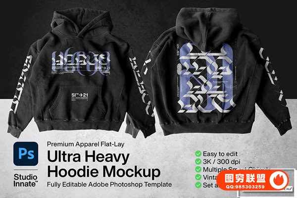 图穷联 » [PS样机]潮流时尚加厚宽松连帽衫卫衣服装设计PS模型样机 Ultra Heavy
