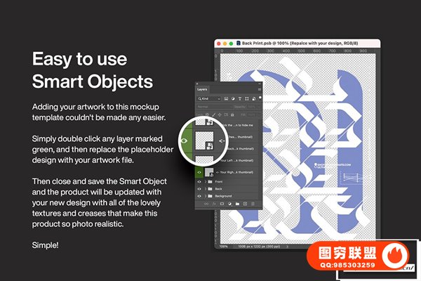 Ultra Heavy Hoodie 包含一个完全可定制的 Adobe Photoshop 模型。通过更新图层面板中以绿色清楚标记的每个智能对象中的内容,轻松应用您的设计或徽标。每个智能对象都已设置为与织物一起变形并继承织物纹理和折痕。您还可以使用颜色选择器将背景和产品颜色更改为您喜欢的任何颜色。