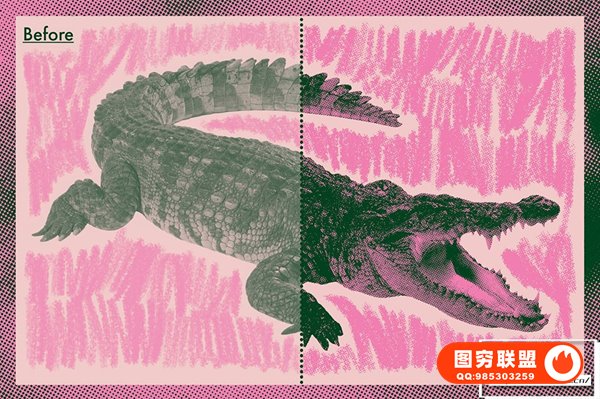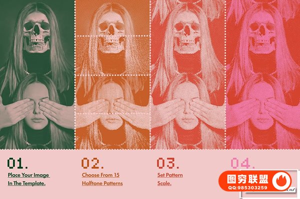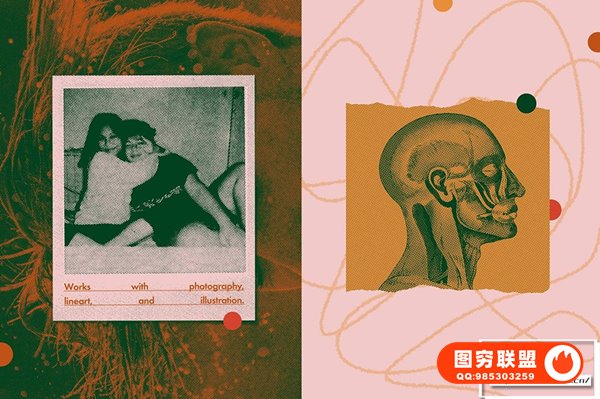 图穷联 » [PSD模板]复古半色调模拟90年代印刷打印颗粒纹理特效PSD模板 Halftone