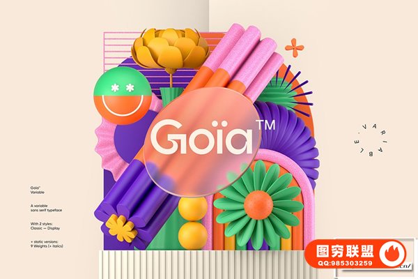 图穷联 » [字体]时尚简洁优雅线条几何风排版设计无衬线英文字体 Goïa™ Variable