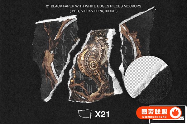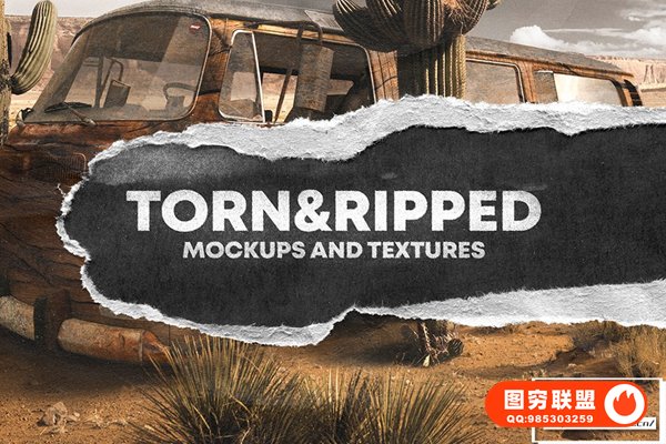 图穷联 » [图片素材]30款潮流复古撕裂毛边粗糙纸张拼贴纹理PS样机合成素材 Torn-Rid
