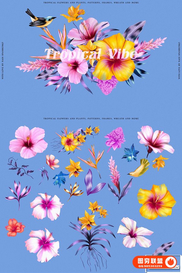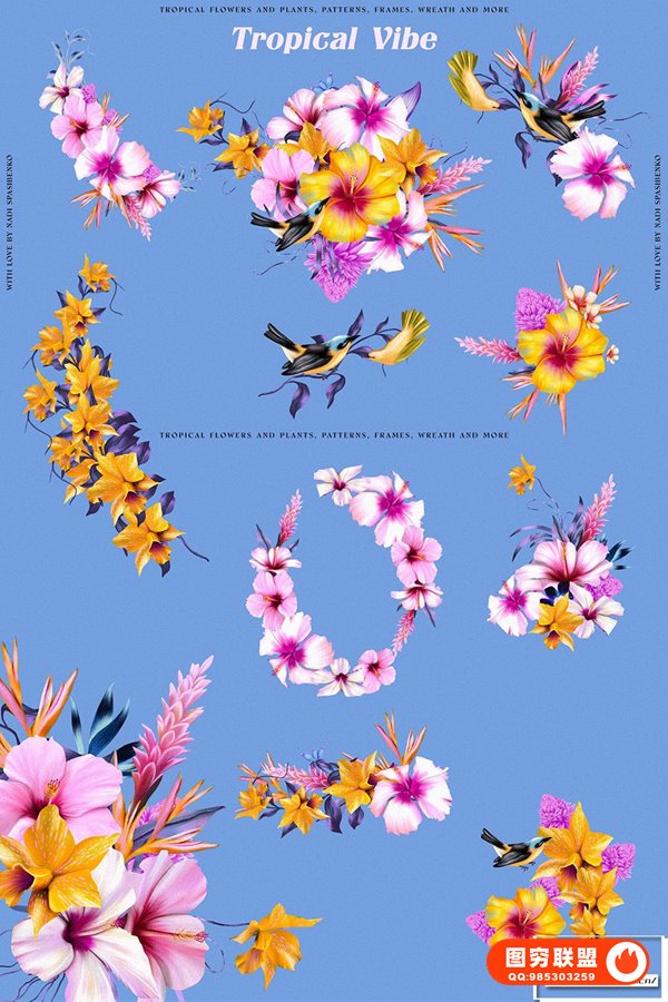 37种元素(2鸟、芙蓉、兰花、霓虹兰、鹤望兰等)