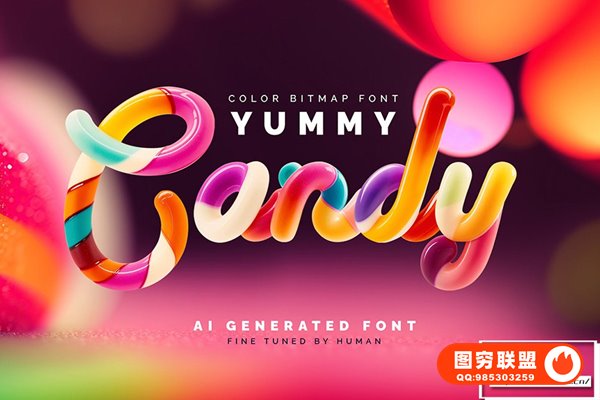 [字体]糖果色扭曲胶囊形态创意设计彩色英文字体 Yummy Candy – Color Bitmap Font